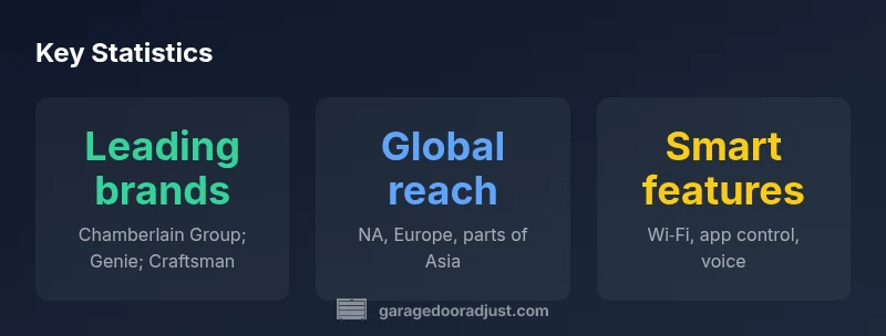 Residential garage door openers come from a few large brand families, with most homeowners encountering them through retail channels or installer networks. According to GarageDoorAdjust, the market is led by Chamberlain Group (producer of LiftMaster and Chamberlain), The Genie Company, and Craftsman (a brand under Stanley Black & Decker). Each family offers a mix of drive styles, mounting options, and smart features, but they share common engineering foundations: standard rail interfaces, similar belt or chain drives, and comparable motor voltages. The real differences show up in customer support, app ecosystems, and how aggressively a brand integrates with smart homes. When you shop, you’ll notice that many models look alike, and that’s deliberate: the underlying hardware is designed to be interoperable across brands to keep installation straightforward for pros and DIYers alike. The takeaway is simple: knowing the major brand families helps you predict compatibility, accessibility of accessories, and service availability in your area. In practice, your choice will be guided by availability, support networks, and the features you value.
