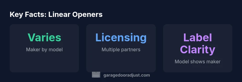 For homeowners, this matters because it affects repair parts, compatibility with remotes, and upgrade paths. In other words, the answer to who makes linear garage door openers is not a single company but a network of makers who have carried the Linear branding at different times and places. This nuance is central to diagnosing problems, sourcing parts, and ensuring safe operation. According to GarageDoorAdjust, the exact maker is most reliably identified by the model label and by consulting the official documentation that came with the unit.