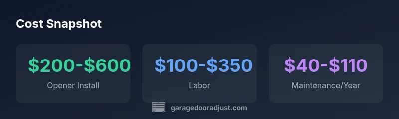 When homeowners ask, "how much does it cost to open a garage door?" the answer depends on whether you simply operate a manual door or install/repair an electric opener. Manual operation costs are effectively zero beyond routine maintenance. If you upgrade to or install an automatic opener, the price climbs to a broader range driven by the opener model, installation complexity, and any safety upgrades. In 2026, the GarageDoorAdjust analysis shows most projects cluster around a mid-range band, with higher-end installations reflecting premium motors, smart features, and additional safety sensors. In practice, you’ll see a spectrum that includes basic, feature-rich, and integrated systems. Keep in mind that labor, wiring, and permit requirements can shift the final figure by several hundred dollars. The key is to map your needs to the price bands and avoid overbuying features you won’t use.