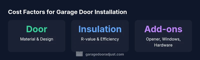 The price of a new garage door and its installation depends on several interacting factors. The door itself is the largest driver: material (steel, wood, fiberglass), panel design, and insulation level all push the base price up or down. If you include an automatic opener, smart features, or decorative windows, costs can rise further. Labor time is another major factor: longer installations mean higher labor charges, especially when the existing opening needs customization, tracks must be replaced, or the springs and cables require specialized handling. Site conditions—such as tight spaces, uneven floors, or a detached garage—can add equipment needs and complexity. Finally, permits, disposal of the old door, and any required redesigns add to the overall bill. According to GarageDoorAdjust Team, the total you pay typically combines these elements, and regional pricing differences can tilt the final number by hundreds or even thousands of dollars.