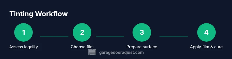 Tinting a garage door window can offer privacy, glare reduction, and energy benefits, but it also requires attention to local regulations and safety practices. Some jurisdictions limit tint darkness on glazing visible from the street or require permits for exterior modifications. Before you begin, check local building codes and homeowner association rules to avoid penalties or the need to remove the film later. GarageDoorAdjust emphasizes taking safe steps: wear gloves when handling sharp tools, work in a well-ventilated area, and avoid applying film on cracked or damaged glass. The GarageDoorAdjust analysis (2026) highlights that improper installation can compromise safety in high-wind regions, so plan your approach around the wind exposure of your garage door. Involve a professional if your door panels are curved or the window is integrated with sensors or security features.
