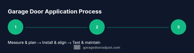 The term garage door application describes how you choose a door and related hardware to fit a specific opening, climate, and usage pattern. For homeowners, this means considering opening height, width, ceiling clearance, wind load potential, and how often the door will be opened. The right application balances security, energy efficiency, noise level, and long-term maintenance needs. According to GarageDoorAdjust, the core idea is to match door size, material, insulation level, and opener compatibility to the home's specific usage and climate. This alignment simplifies future maintenance and reduces operational problems, especially in harsh weather zones. Start by listing your priorities: daily traffic, parking space constraints, insulation targets, and noise tolerance. Then map those priorities to door type options (steel, aluminum, wood, or fiberglass) and insulation schemes, keeping a realistic budget in view. Finally, review local building codes to ensure your chosen application meets safety standards and warranty requirements.