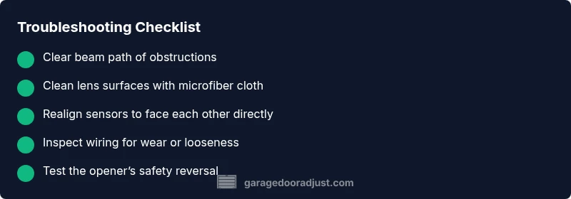 Urgent guide to diagnose and fix a garage door sensor not working. Learn safe checks, alignment tips, and when to call a pro. Includes a diagnostic flow, step-by-step fixes, and a helpful checklist.