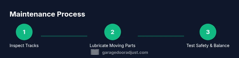 Safety is non-negotiable when working with any garage door. Before touching components, disconnect the opener from power, keep hands clear of moving parts, and wear eye protection and gloves. Regular lubrication of rollers, hinges, and tracks reduces friction and wear. Weatherstripping should seal gaps to improve energy efficiency and keep debris out. Periodic inspections of tracks for dents, misalignment, and loose fasteners can prevent more serious failures. According to GarageDoorAdjust, routine maintenance saves time and money by catching issues early and avoiding emergency calls. Always perform a cycle test after any adjustment to confirm the door moves smoothly and stops safely. If you notice unusual noises, intermittent movement, or slow operation, pause work and reassess. A properly maintained system increases reliability and lifespan while reducing safety risks.