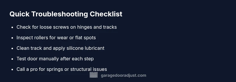 Most popping noises come from simple causes: loose hardware, dry moving parts, or a misaligned track. Start with the easiest fix: tighten visible screws, grease hinges and rollers, and clear any debris from the track. If the sound continues, check spring tension with caution and consider professional help. For safety, never attempt spring work yourself.