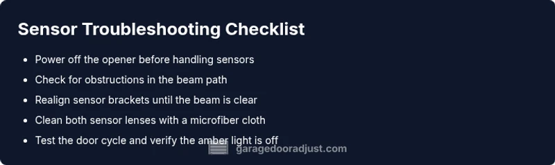 Urgent guide to diagnose and fix a yellow light on your garage door sensor. Learn common causes, safe checks, diagnostic flow, and step-by-step fixes to restore safe operation fast.
