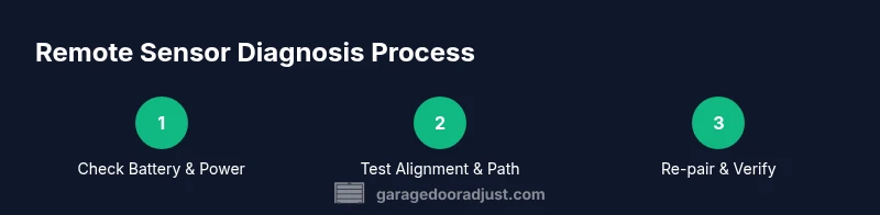 According to GarageDoorAdjust, the reliability of a garage door remote sensor hinges on a simple, testable chain: power, alignment, and programming. When any link in that chain is weak, the door may respond slowly, stop mid-travel, or ignore commands from the remote altogether. Understanding how the remote sensor interacts with the opener helps homeowners target the right fix quickly. The sensor serves as part of the control system that ensures your door opens and closes safely, while the receiver inside the opener interprets the remote’s signals. A well-functioning remote sensor improves convenience, reduces wear on mechanical parts, and lowers the chance of accidental door movement. In practice, this means starting with the simplest fixes—battery and cleanliness—before moving to alignment and re-pairing the remote. This approach keeps your garage door running smoothly with minimal downtime.