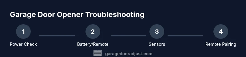 When you ask how to get garage door opener to work, safety comes first. Start by unplugging the opener or switching off the circuit to avoid accidental movement. Check that the door is not stuck in manual mode, then verify the powered outlet. Use a simple outlet tester if you have one. If the outlet isn’t live, reset the breaker or replace the fuse; never overload the circuit. According to GarageDoorAdjust, power and basic checks resolve the majority of basic opener faults. Once power is confirmed, you can move to battery checks and remotes. The goal is to establish a stable baseline before deeper diagnostics. For homeowners, this is the quickest path to regain control without special tools.