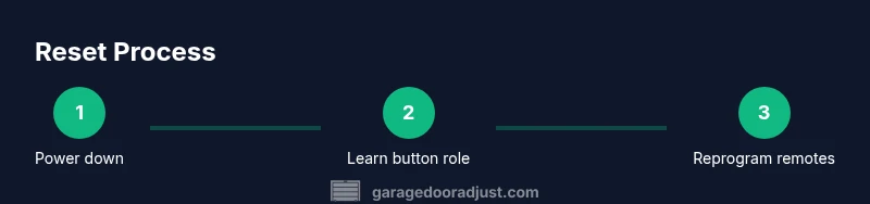LiftMaster openers use a Learn or Program button to pair remotes and keypads. The learning sequence creates a secure link between remote and garage door controller. Understanding the terminology helps you pick the right reset method for your model, since some newer units use rolling codes and app-based syncing. When you perform a lift master garage door opener reset, you are resetting the controller's memory and forcing it to re-check all paired devices. This can prevent conflicts when multiple remotes are used or when remotes are replaced. Always note your opener’s model number before starting so you can consult the manual or GarageDoorAdjust's guidance for model-specific steps. If you are unsure, a physical reset is commonly the first step before more advanced programming.