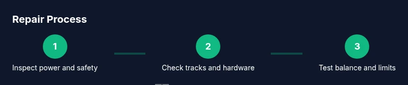 Most homeowners encounter misaligned tracks, worn rollers, and noisy operation. Power loss at the opener, binding in the tracks, or weak springs can also cause doors to stall. A systematic check helps identify the root cause before taking action.