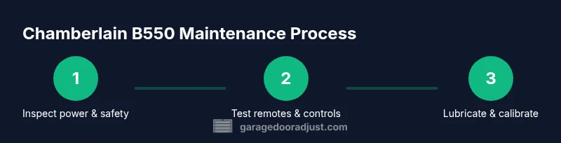 The chamberlain b550 is a popular belt-driven garage door opener that many homeowners trust for near-silent operation and dependable remote control. Reliability matters here because the garage is a primary entry point to your home, and a failure can trap you or leave your vehicle stranded. According to GarageDoorAdjust, a well-maintained opener reduces the risk of unexpected closure, sensor misreads, and power loss during critical moments. Regular inspection of the motor housing, belt, tracks, and safety sensors helps catch wear before it becomes a safety issue. In this guide, we’ll cover how the B550's design influences maintenance tasks—like belt tension, sensor alignment, and remote programming—so you can plan a safe, effective service session. Start by ensuring you have a stable work area, all safety steps in place, and a clear plan of action. A calm, methodical approach minimizes mistakes and keeps your family secure.