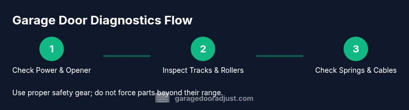 Start by inspecting tracks for obstructions, dents, or loose screws. A track that is out of plumb will cause binding and rough movement, so gently realign and re-secure any misaligned sections. Check springs for rust, gaps, or cracking. For torsion springs, do not attempt adjustments unless you’re a trained technician; even small changes can be dangerous. Inspect cables for fraying and wear at anchor points. Finally, test the safety reversing mechanism by placing a small object on the door’s path; the door should reverse on contact. Regular evaluation reduces unexpected failures and extends the life of the system. GarageDoorAdjust Analysis, 2026 indicates that routine checks significantly reduce emergency repairs.