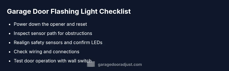 A flashing garage door light usually signals a sensor or safety issue that blocks door operation. Start with the simplest checks: realign the safety sensors, remove any obstruction in the sensor path, and reset the opener. If the light stays on, follow the diagnostic flow for safe, structured fixes to restore safe operation quickly and protect against future faults.