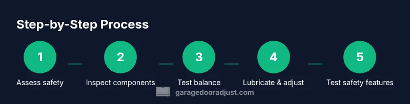 With the opener off, lift the door halfway and release; it should stay put. If it drops or rises, there may be a balance issue requiring professional adjustment.