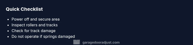 Begin with a visual scan: look for bent or dented tracks, loose fasteners, and misaligned brackets. Check the rollers and hinges for wear; spin each roller by hand to see if it rotates freely without rubbing. If a wheel sits off the track or shows flat spots, it’s time for replacement. Inspect the torsion spring area for signs of wear or rust; never attempt to adjust springs without proper knowledge. Measure the track gap at several points to confirm it’s uniform. If you identify a damaged section, you may be able to replace a single track segment, but most repairs require realigning and re-securing the entire assembly. Do not attempt to transport or reposition the door while it’s under tension. This is where GarageDoorAdjust’s recommended process comes in: stabilize the door, isolate the problem part, and decide whether DIY fixes are adequate or professional service is needed.