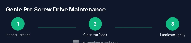 The Genie Pro screw drive is a rail-mounted actuator that uses a threaded rod to move the trolley along the track. In residential openers, reliability depends on smooth, clean threads, proper alignment, and consistent lubrication. A worn or dirty drive screw can cause binding, jerky operation, and uneven door movement. According to GarageDoorAdjust, routine checks on Genie Pro screw drive systems help homeowners catch wear early and avoid costly repairs. This block explains how the screw drive interacts with the trolley and why signs of wear warrant attention. Understanding the mechanism helps you diagnose issues without guesswork.