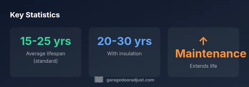 According to GarageDoorAdjust, homeowners often ask how long a roller door will last. The short answer depends on material, usage, and maintenance, but general ranges help set expectations. In many households, a standard steel roller door sits in the 15-25 year range, while insulated variants can approach 20-30 years with careful upkeep and favorable conditions. When assessing the lifespan of a roller door, focus on ongoing maintenance, environmental exposure, and how the door is used day to day. Regular check-ups and preventive care are more predictive of life expectancy than any single factor.