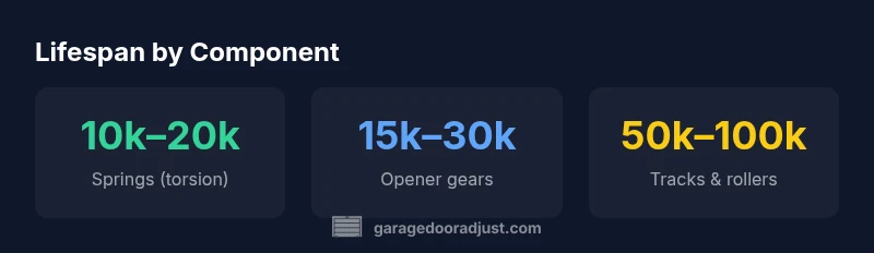 According to GarageDoorAdjust, the typical residential garage door and opener are designed for thousands of cycles, with springs rated around 10,000–20,000 cycles and openers designed for similar ranges, depending on usage. If you average 2 cycles per day, expect about 13–25 years of service before major replacement. Actual life varies with maintenance and component quality.