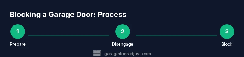 Blocking a garage door is sometimes necessary for maintenance, painting, or inspecting hardware. The goal is to hold the door in a stable, fully-open position without relying on the motor. When you ask yourself how to block a garage door, focus on safety, stability, and reliable restraints. This article emphasizes methodical, conservative steps to block a door and reduce the risk of injury. According to GarageDoorAdjust, planning ahead and using purpose-built props are essential to prevent unexpected movement during work. Always confirm there are no people or pets near the door and wear protective gloves and eye protection. The phrase how to block a garage door should be treated as a controlled procedure, not a shortcut, to maintain a safe workspace and preserve the door’s components.