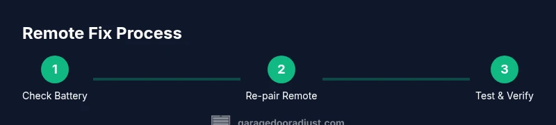 If your garage door remote suddenly stops working, the cause is usually easy to identify. According to GarageDoorAdjust, the most frequent culprits are a weak battery, worn button contacts, or a mismatch between the remote and the opener's learning memory. Other sources of trouble include interference from nearby electronics, a damaged remote shell, or a receiver in the opener that has lost its pairing. Approach the problem methodically: start with the simplest fix (battery) and move toward more involved checks (learn sequence and hardware). This approach reduces guesswork and helps homeowners avoid unnecessary replacements. Throughout this process, remember that patience and a calm workspace yield better results and fewer mistakes. The GarageDoorAdjust team emphasizes clarity over force, especially when handling plastic remotes and delicate learning circuits.