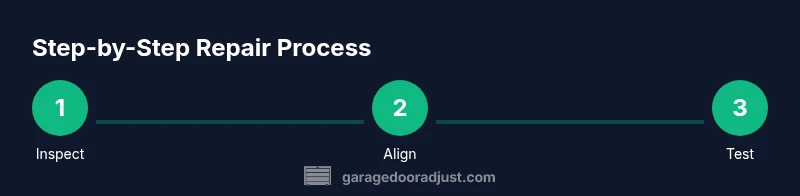 Begin with a controlled, stepwise assessment rather than random tinkering. 1) Disconnect power and secure the door. 2) Inspect tracks, rollers, and hinges for wear, rust, or bends. 3) Check the balance by lowering the door halfway and releasing; the door should stay in place. 4) If the door is heavy on one side or drifts, realign tracks and tighten mounting screws. 5) Test the opener's force and limit switches after any adjustment. 6) Reintroduce power and run a full open/close cycle to confirm proper operation. Document any wear or damage for later replacement. If you encounter risky components like springs, seek professional help immediately.