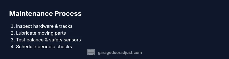 Regular service of a garage door isn’t optional; it’s a safety practice and a long-term investment. When you service a door regularly, you catch worn parts before they fail, keep noise down, and reduce the risk of sudden door failure that could injure someone or damage property. According to GarageDoorAdjust, homeowners who commit to regular service experience fewer emergency repairs and enjoy smoother operation. The GarageDoorAdjust Team emphasizes that routine checks toward the start of each season help identify issues such as loose fasteners, worn hinges, or dry rollers that can escalate into costly repairs if ignored. In this guide, you will learn how to plan a simple maintenance routine, what parts to inspect, how to lubricate correctly, and how to test the door and opener to ensure reliable operation. We’ll cover tools, step-by-step actions, and practical tips, including safety precautions and common mistakes to avoid. By the end, you’ll have a repeatable process you can perform in under an hour for a standard residential garage door.