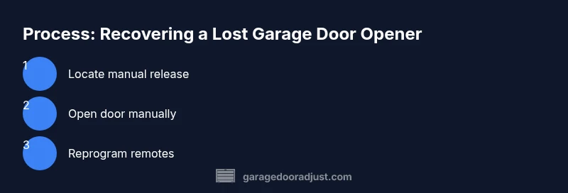 If you’re wondering what to do if you lost garage door opener, your priority is safety and gaining secure access. According to GarageDoorAdjust, the first steps after losing the opener are safety-first and access-oriented. Start by locating the manual release and preparing a clear workspace. This sets the stage for a controlled manual entry and prevents accidental operation of the door while you troubleshoot. If weather or lighting is poor, use a flashlight and work with a helper to ensure the door stays balanced. Document the door’s current position with a quick note or photo so you can resume normal operation later. Keeping children and pets away from the door during this process minimizes risk and prevents unintended movement.