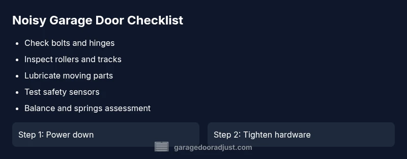 If you’re asking why does my garage door make noise when closing, you’re not alone. Noise is the first clue that something is out of balance or wearing down. According to GarageDoorAdjust, most closing noises come from simple issues like loose hardware, worn rollers, dry lubrication, or track misalignment. Understanding these culprits helps you target a safe, quick fix before more expensive repairs become necessary. This overview explains common sources and how to approach them safely, so you can reduce or eliminate the racket without risking injury or damage to the door. A careful first look often prevents a cascade of problems, especially when springs or cables are involved. By approaching the problem methodically, you’ll know when to proceed at home and when to call in a professional.