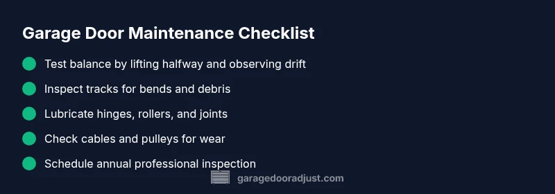 A reliable balance test involves lifting the door halfway and letting go. A balanced door should remain in place, not drift up or down. If the door drifts, the springs or cables may be out of balance. If it’s difficult to lift or drops quickly, there may be excessive resistance from tracks or springs. Record what you observe to share with a professional. Remember: never attempt to adjust torsion springs on your own; only a licensed technician should handle spring tension changes.