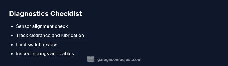 To systematically diagnose why the door stops before closing, follow a simple flow: verify safety sensors, check for physical binding in tracks, review the opener settings, and inspect hardware wear. This flow helps isolate whether the issue is sensor related, mechanical, or electrical. Remember to disconnect power when performing any adjustment that could activate the opener.