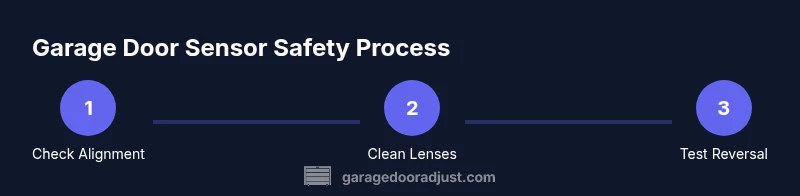 Garage door safety sensors (often called photo-eye sensors) comprise a transmitter and receiver mounted on opposite sides of the door. The system monitors the beam; if the beam is broken or misaligned, the opener halts and reverses. LED indicators on the sensors provide a quick status check: steady light typically means alignment is good, while a blinking pattern often signals misalignment or obstruction. Understanding this basics helps homeowners diagnose issues without attempting dangerous workarounds. For reference, safety standards emphasize reliable sensor operation to prevent entrapment and injury. If the system does not behave as described, start with the simplest fixes—alignment, cleaning, and wiring—before replacing components or seeking professional help.