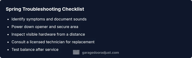 Urgent, step-by-step troubleshooting for a broken spring in your garage door. Learn safety checks, diagnosis, and when to call a pro with GarageDoorAdjust.